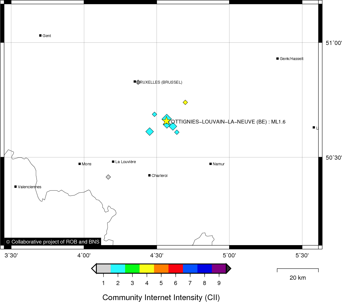 Epicentral coordinates 50.658° N, 4.567° E Uncertainty ± 1.2 km