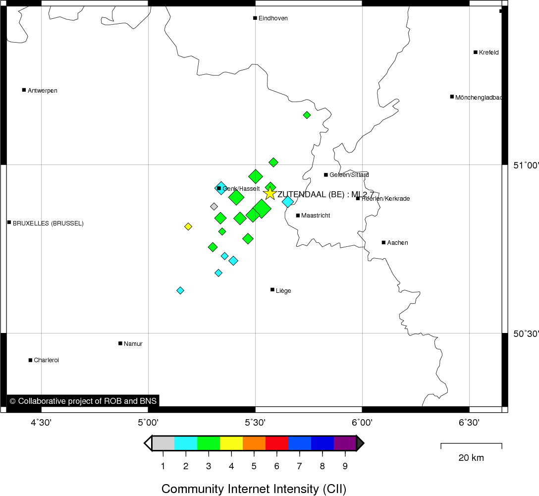 Epicentral coordinates 50.915° N, 5.560° E Uncertainty ± 0.5 km