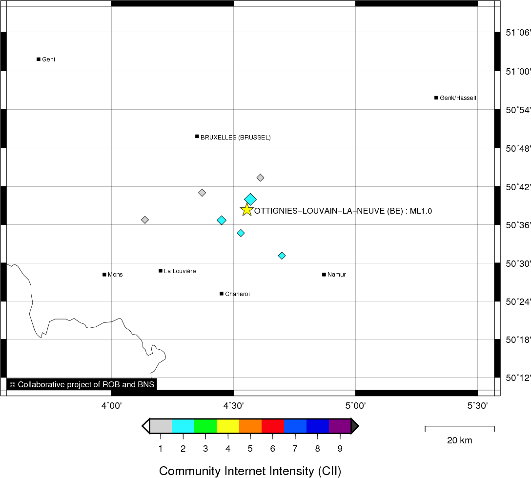 Epicentral coordinates 50.639° N, 4.555° E Uncertainty ± 0.8 km