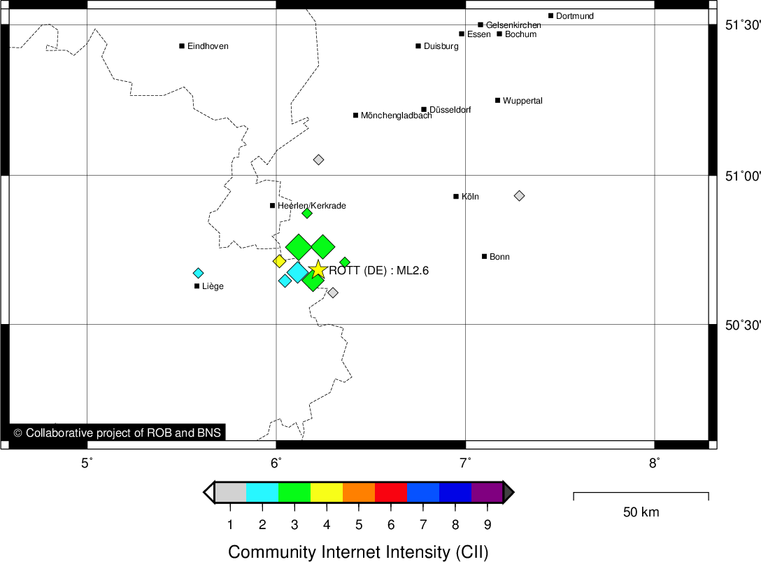 | Epicentral coordinates | 50.684° N, 6.222° E Uncertainty ± 0.3 km |