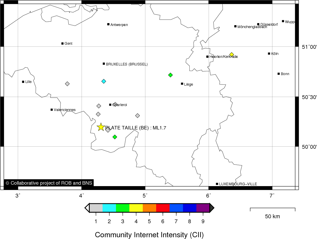 | Epicentral coordinates | 50.195° N, 4.305° E Uncertainty ± 1.8 km |