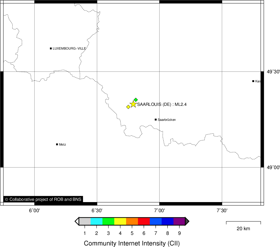 Epicentral coordinates 49.330° N, 6.790° E Uncertainty ± 11.9 km