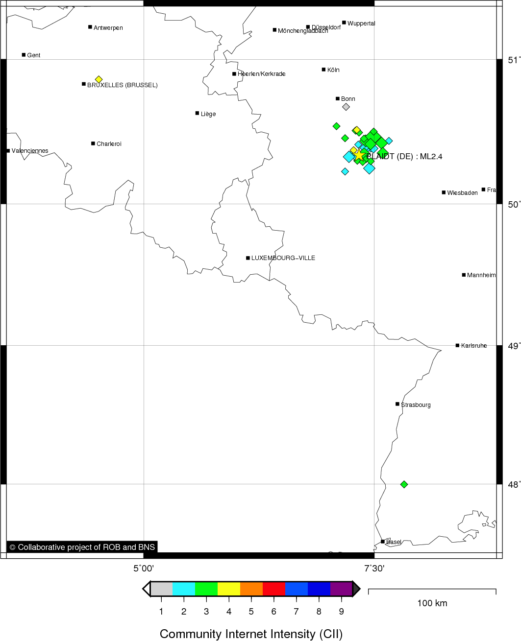 | Epicentral coordinates | 50.338° N, 7.334° E Uncertainty ± 3.0 km |