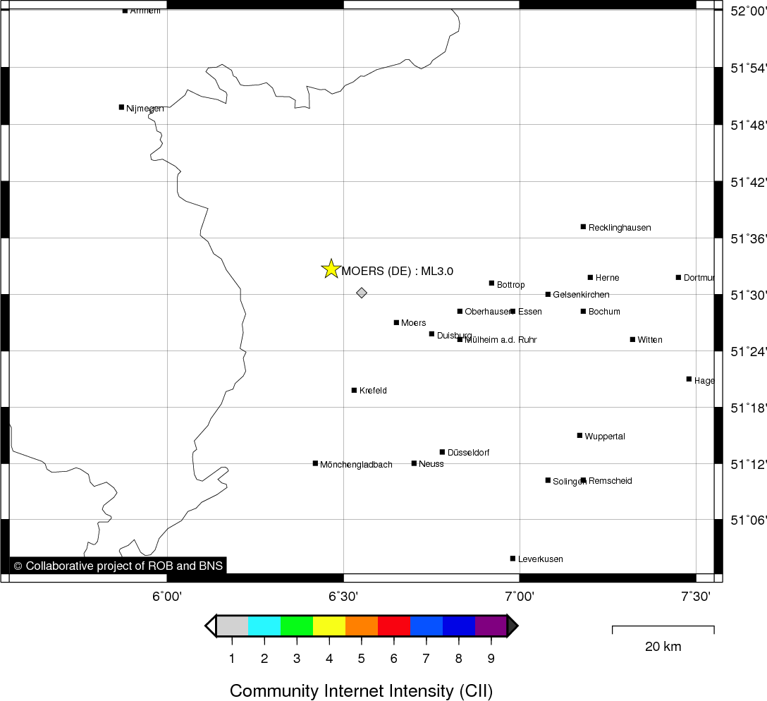 | Epicentral coordinates | 51.545° N, 6.466° E Uncertainty ± 6.0 km |