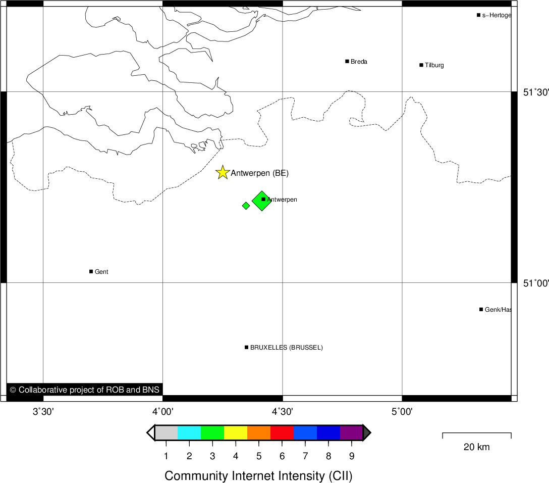 Epicentral coordinates 51.289° N, 4.251° E Uncertainty ± 1.9 km
