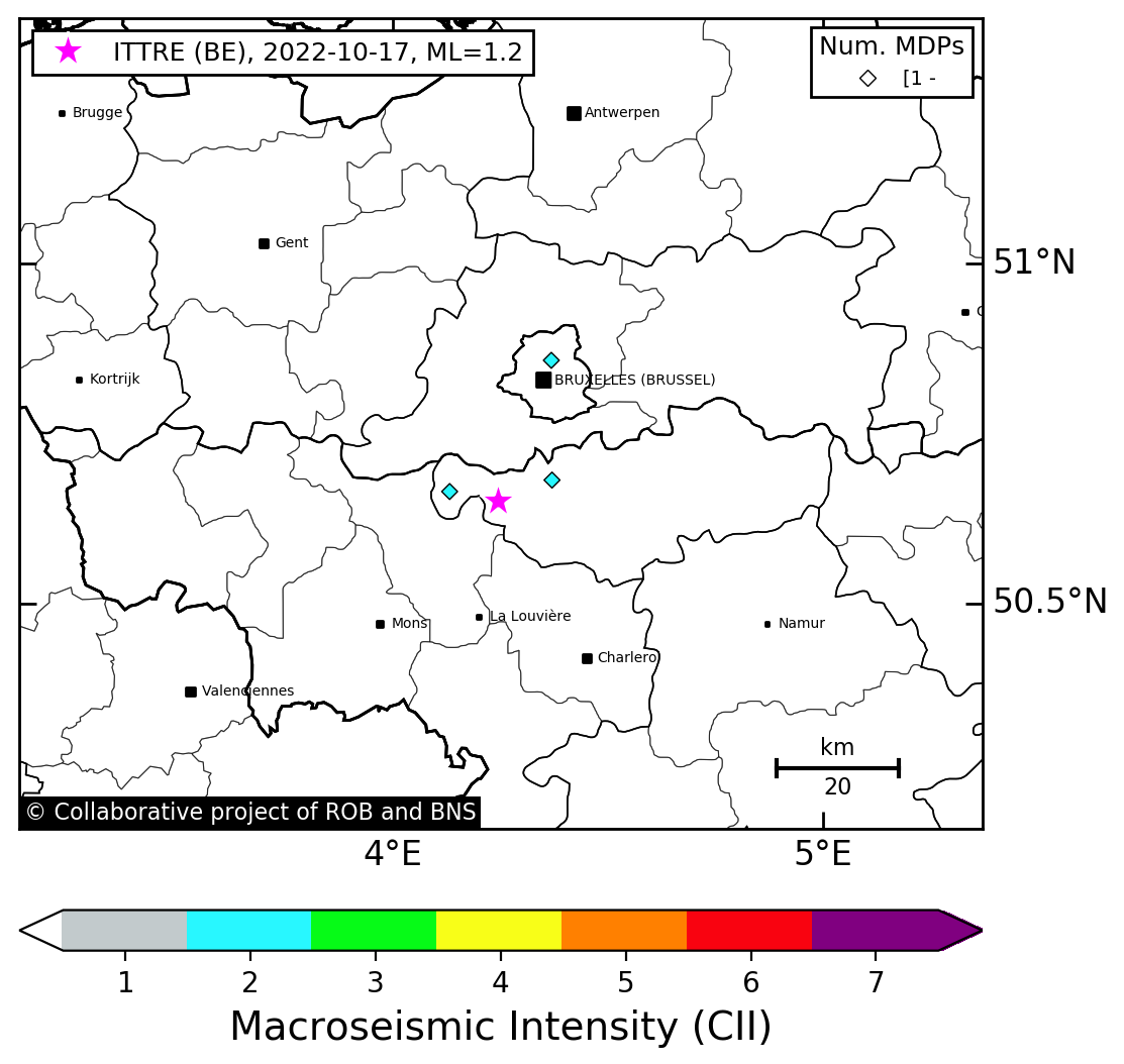 Epicentral coordinates 50.652° N, 4.245° E Uncertainty ± 0.6 km