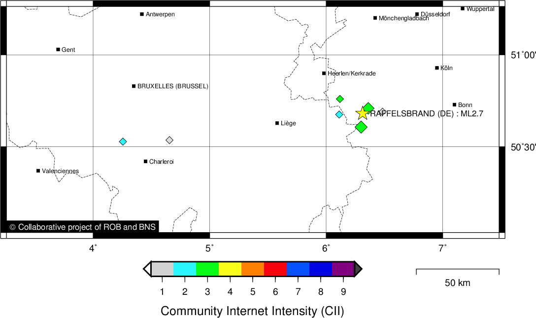 Epicentral coordinates 50.654° N, 6.297° E Uncertainty ± 0.4 km