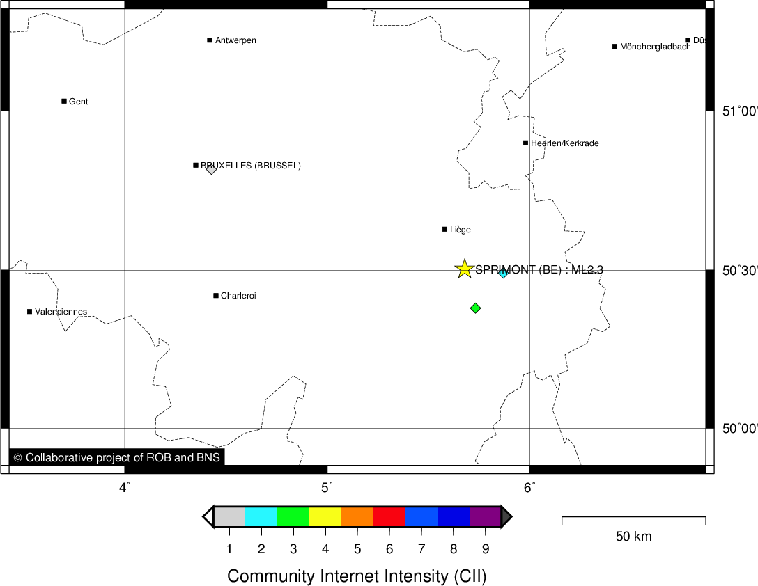 | Epicentral coordinates | 50.504° N, 5.678° E Uncertainty ± 0.5 km |