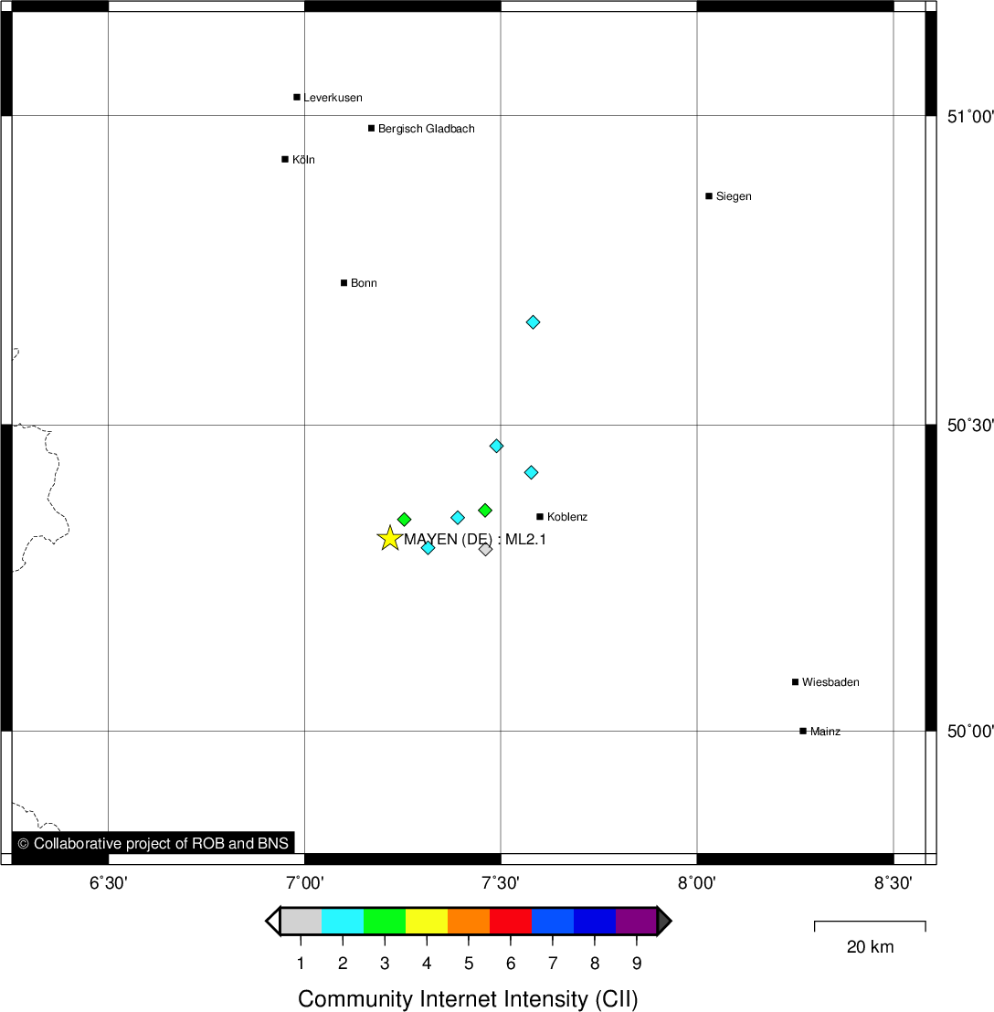Epicentral coordinates 50.398° N, 7.389° E Uncertainty ± 1.9 km