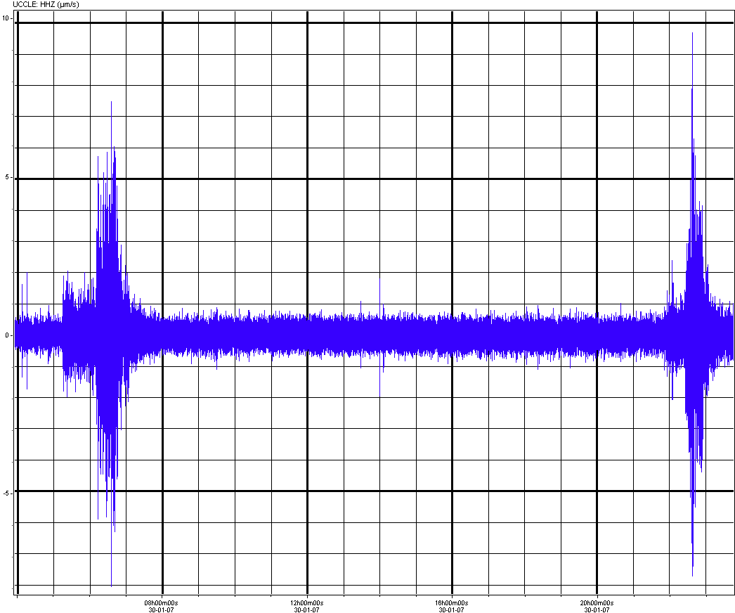 ground velocity in µm/s, universal time = local time + 01h00). The raw unfiltered