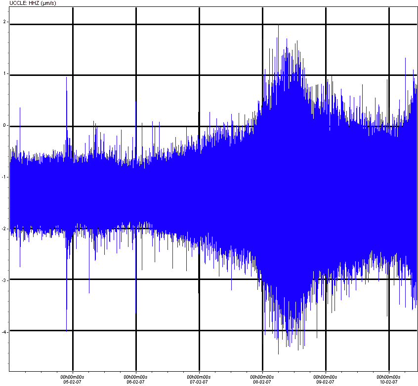 7 February this microseismic noise increases clearly, due to the arrival of a