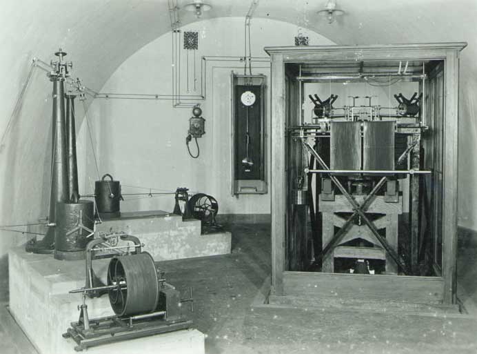 En 1909, on mit en service le pendule horizontal Wiechert de 1000 kg et en 1910, le pendule vertical Wiechert de 1300 kg. Ces deux instruments reportaient les mouvements du sol à l'aide d'une plume grattant un papier noirci.