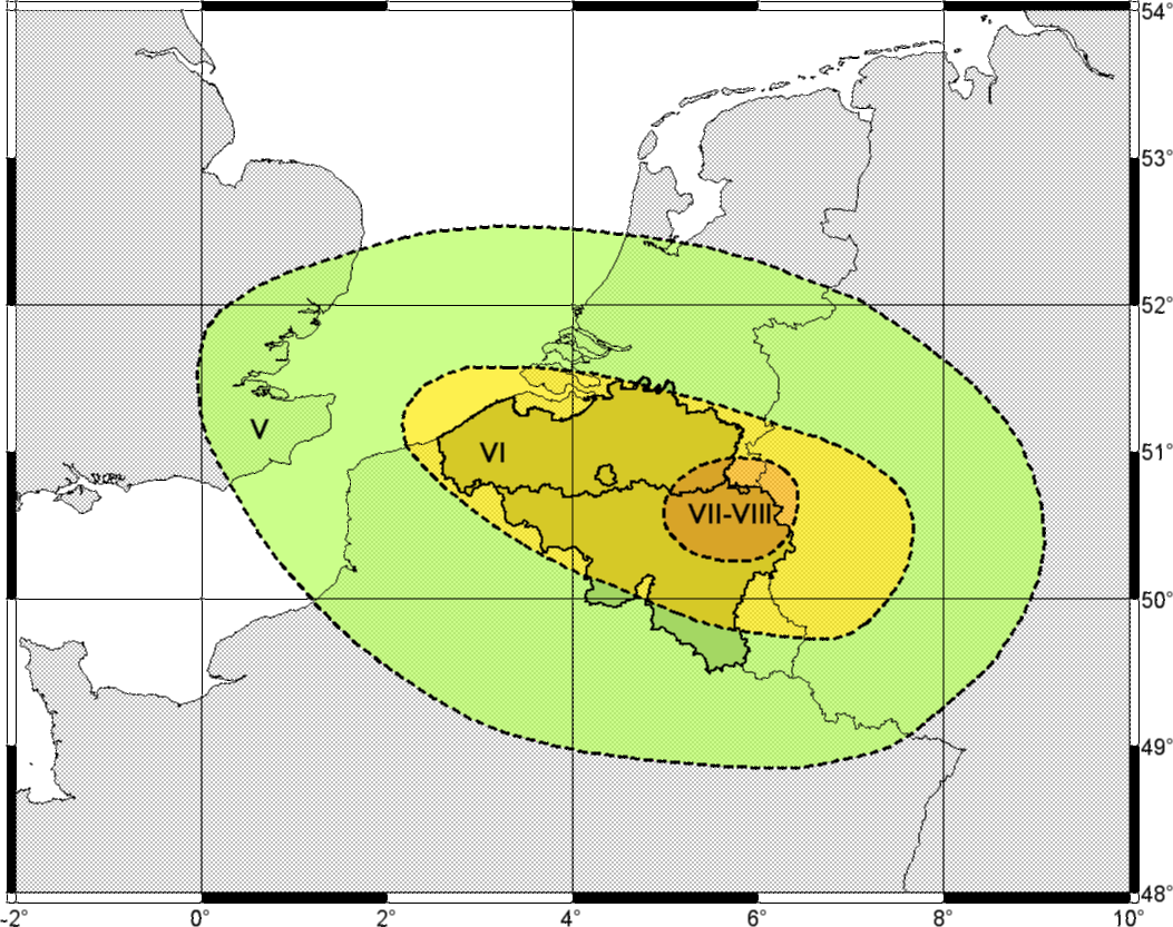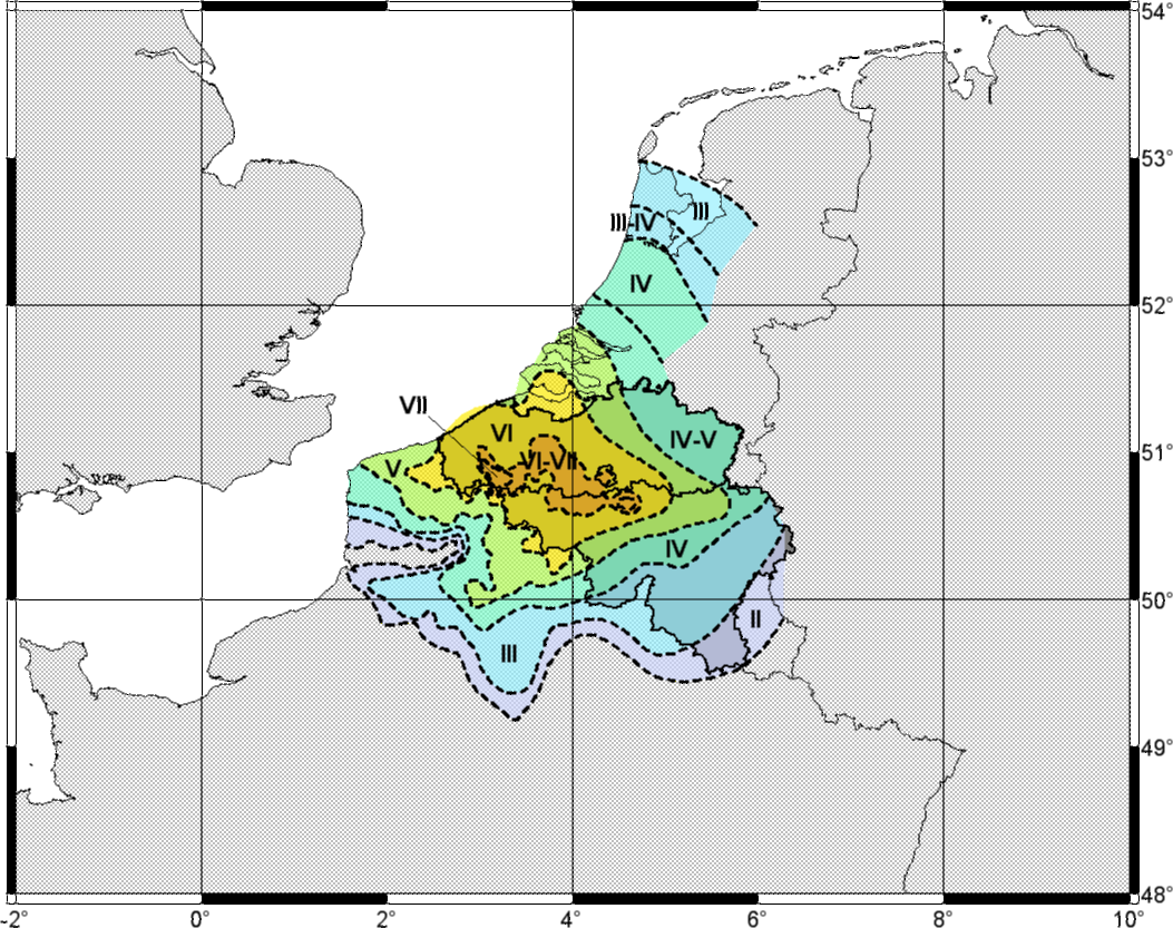 Sedert 1932 voert de KSB na elke aardbeving die in België gevoeld wordt, een enquête uit naar de effecten ervan in België. Aan de hand van de gerapporteerde gewaarwordingen en de eventuele schade kan dan een zogenaamde macroseismische kaart opgesteld worden die de verdeling van de intensiteit van de aardbeving weergeeft. Op dergelijke kaart worden zones van gelijke intensiteit afgebakend door zogenaamde isoseisten. Hoewel deze methode grotendeels ontwikkeld werd vóór de ontwikkeling van de seismograaf, vormen macroseismische kaarten een welkome aanvulling op de metingen door seismografen. Ze geven een goed beeld van de complexe verdeling van de grondbewegingen en de aard van de aangerichte schade, ook op plaatsen waar geen meetinstrumenten zijn opgesteld. Deze kaarten spelen ook een rol bij het bepalen van de bouwcodes in ons land.